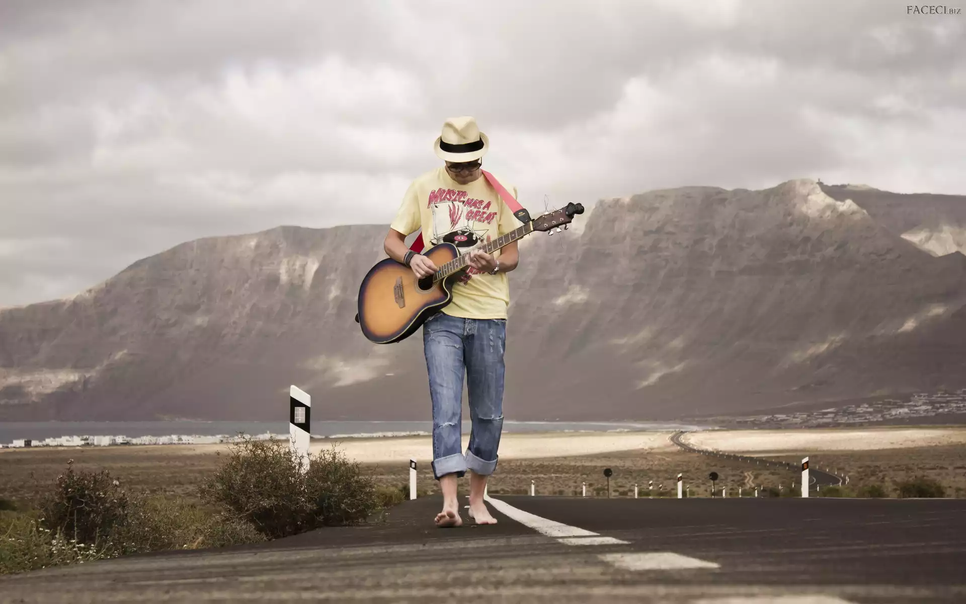Droga, Gitara, Mężczyzna, Góry - faceci.biz